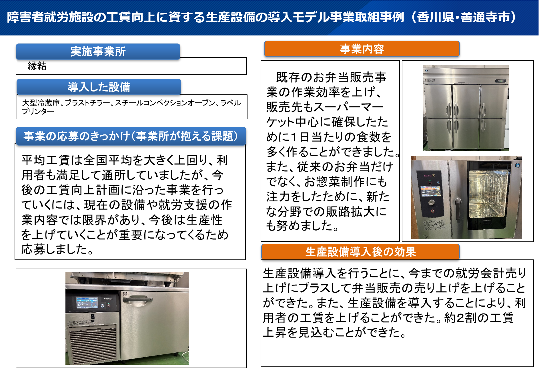 障害者就労施設の工賃向上に資する生産設備の導入モデル事業取組事例に採用されました